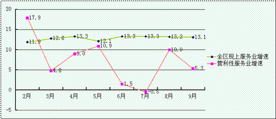 图1:1-9月官渡区规模以上服务业营业收入增速