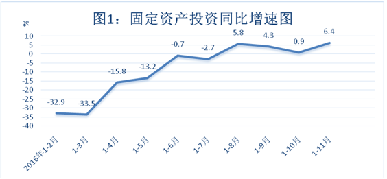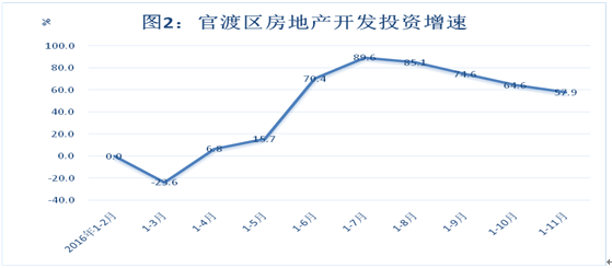 2016年1-11月官渡区固定资产投资增长6.4%