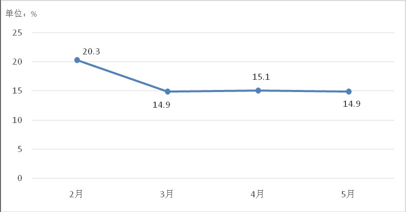 1-5月份,全区规模以上工业增加值同比增长14.9%,增速高于全市增速7.1个百分点,增幅较1-4月回落0.2个百分点。总体上看,全区规模以上工业生产仍处于平稳增长,但增幅较上月有所回落。如图1