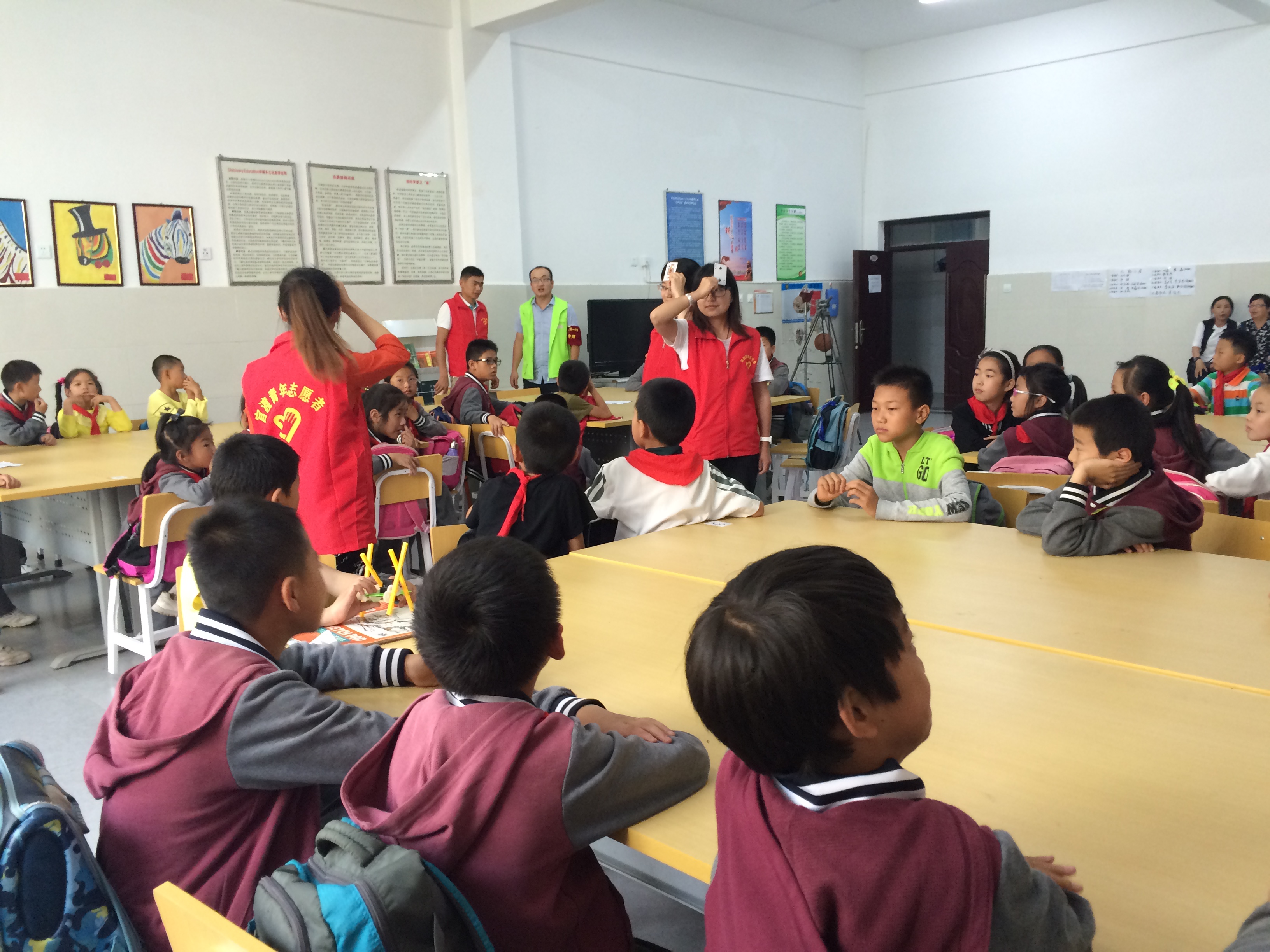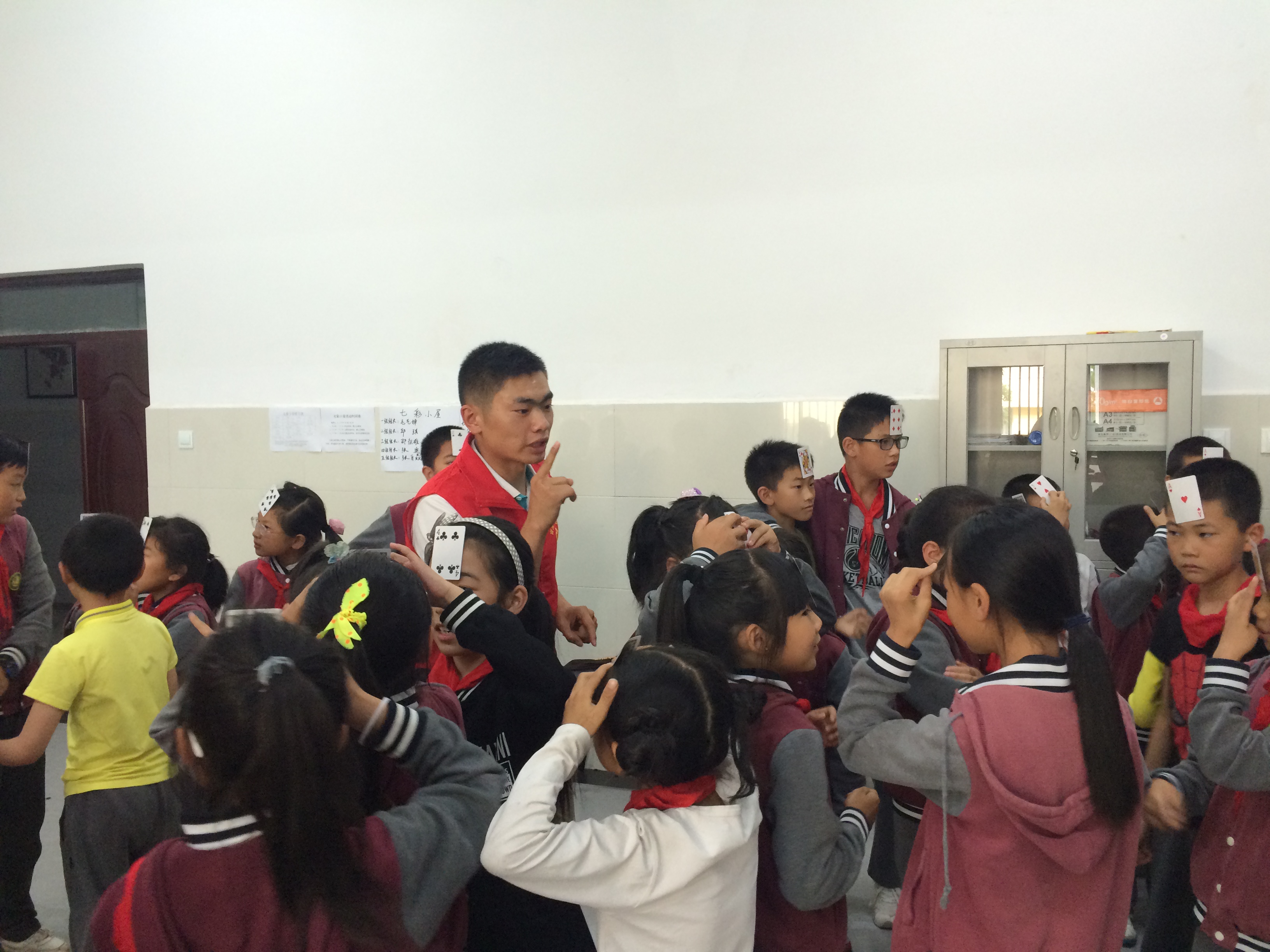 大学生志愿者教孩子们玩游戏