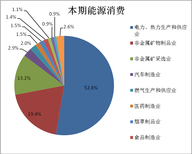 非金属矿采选业:该行业有1家,本期能耗为7.46万吨标准煤,比同期8.58万吨标准煤减少了1.12万吨标准煤。降幅为13.1%。能耗占比为13.2%。