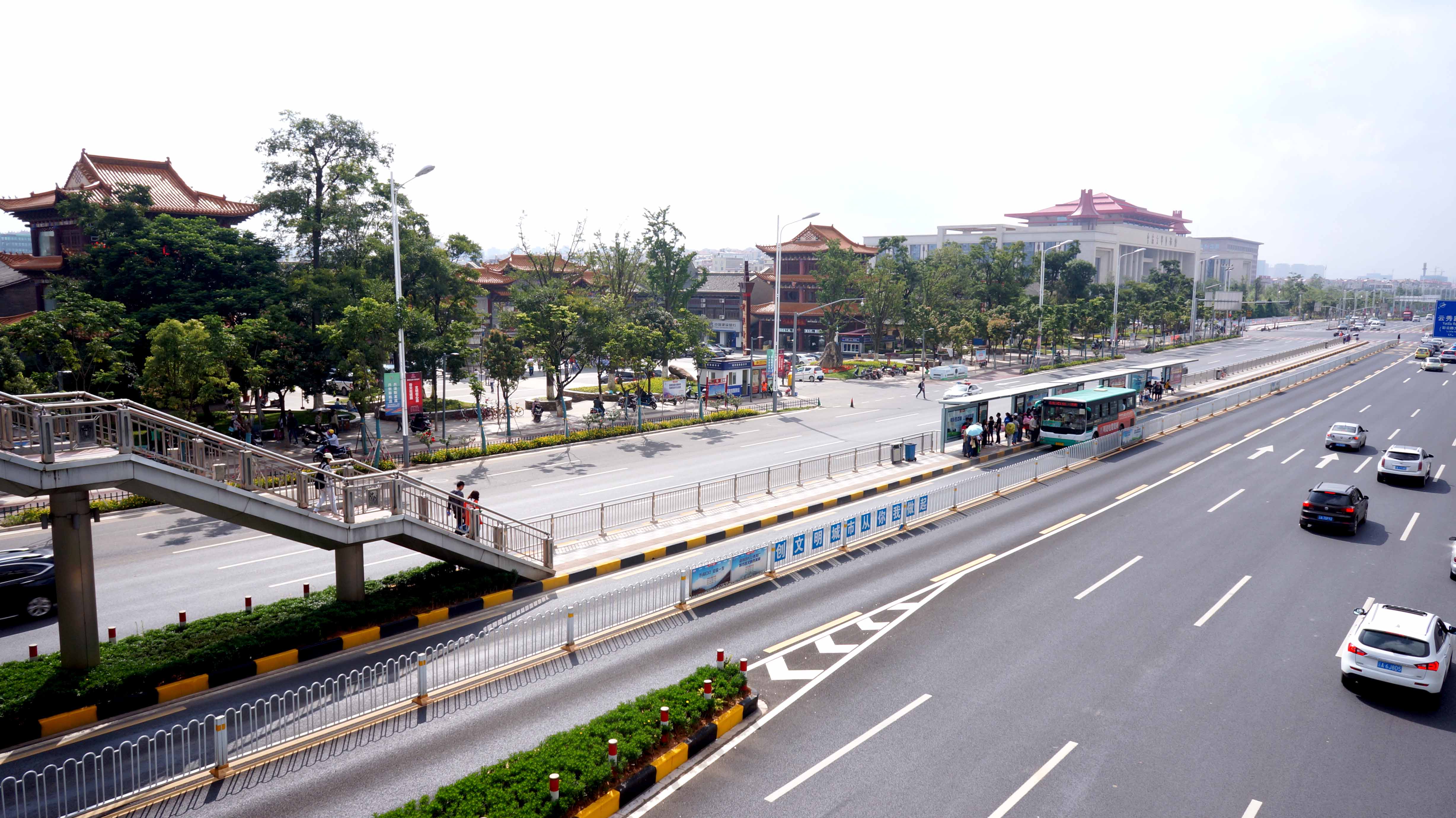 道路内通行能力显著提升、道路红线外一路绿树成荫、花开不败,道路沿途各景观品质风华正茂。去年12月,市委、市政府出台了“春城花都” 迎宾景观大道综合整治工作总体方案,记者日前沿广福路看到,经过官渡区近半年综合整治提升,广福路官渡段分外“凸显”迎宾景观大道新亮点。