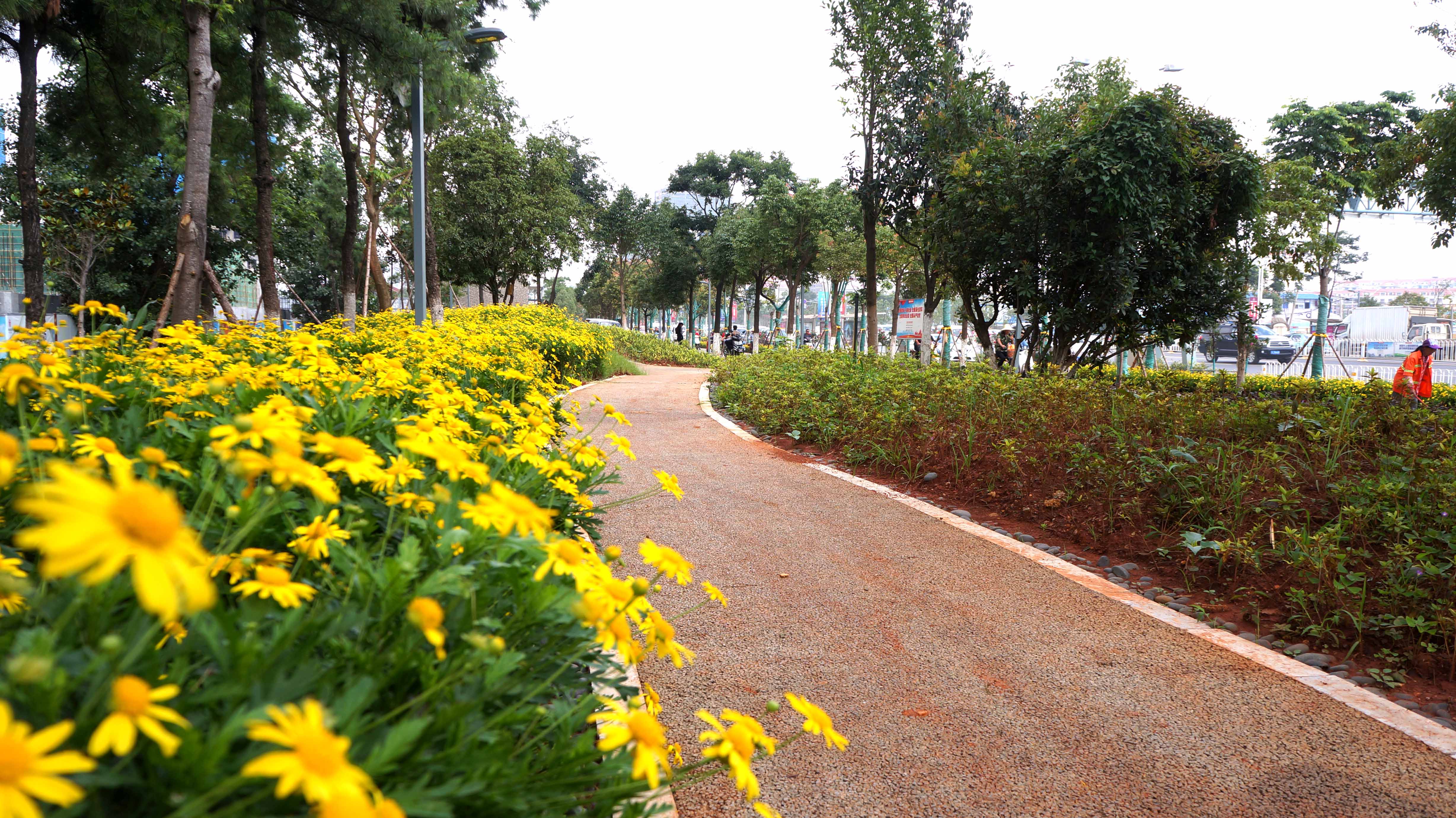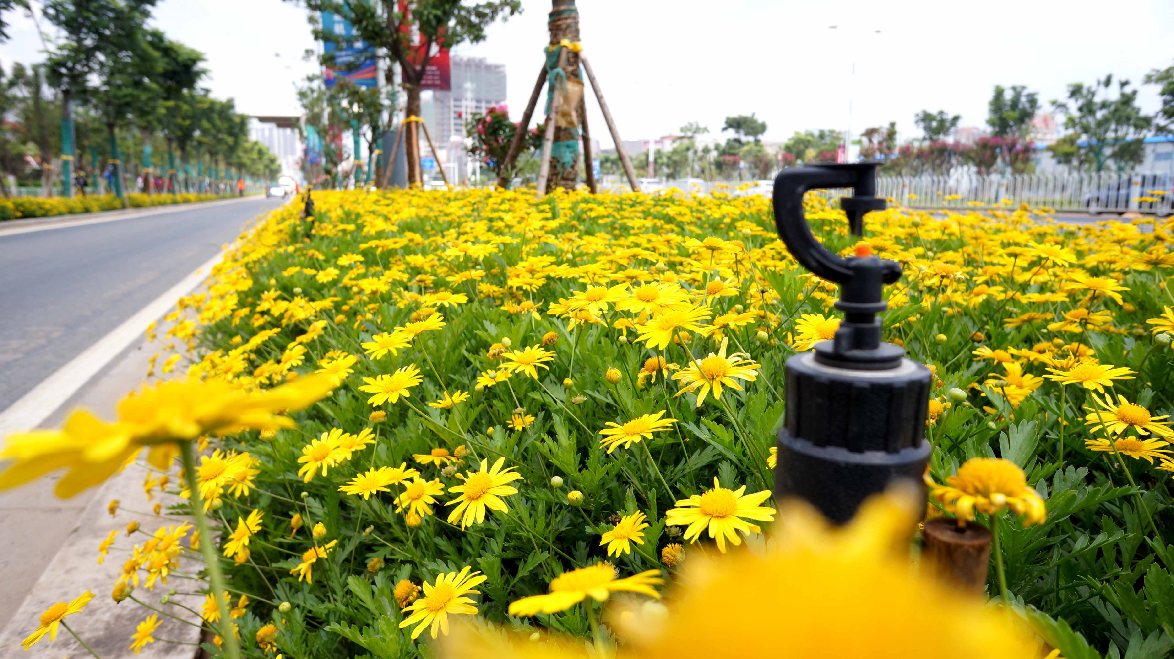 围绕“春城花都” 迎宾景观大道的主题,官渡区拆临、拆违,在道路南北两侧各新增了一条20—50米的街头绿化带。值得一提的是,为节约用水,中建三局昆明广福路项目方在广福路官渡段新铺设了中水主管10500米,灌溉支管12万米,实现了绿化中水浇灌系统全覆盖。定时浇灌、分日调节、遥控辅助等智能模式,使灌溉更加科学、便捷。