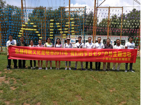 “七夕今宵看碧霄,牛郎织女渡鹊桥。家家乞巧望秋月,穿尽红丝几万条”。在“七夕”到来之际,为弘扬民族、时代精神,传承中华民族优良传统。8月23日,官渡区小板桥街道金刚社区组织社区全体工作人员、居民等30余人开展2017年“我们的节日•七夕”户外主题活动。