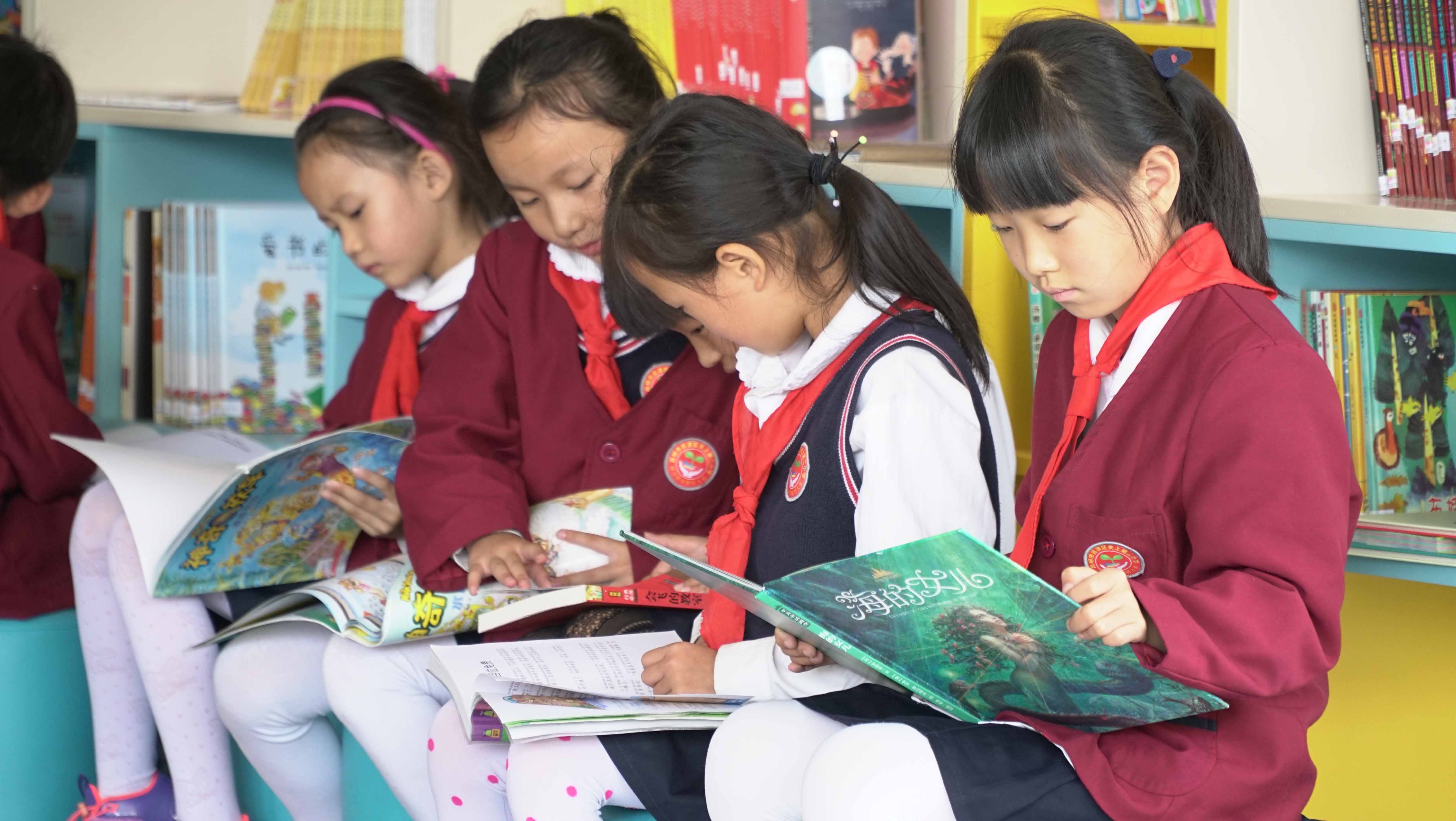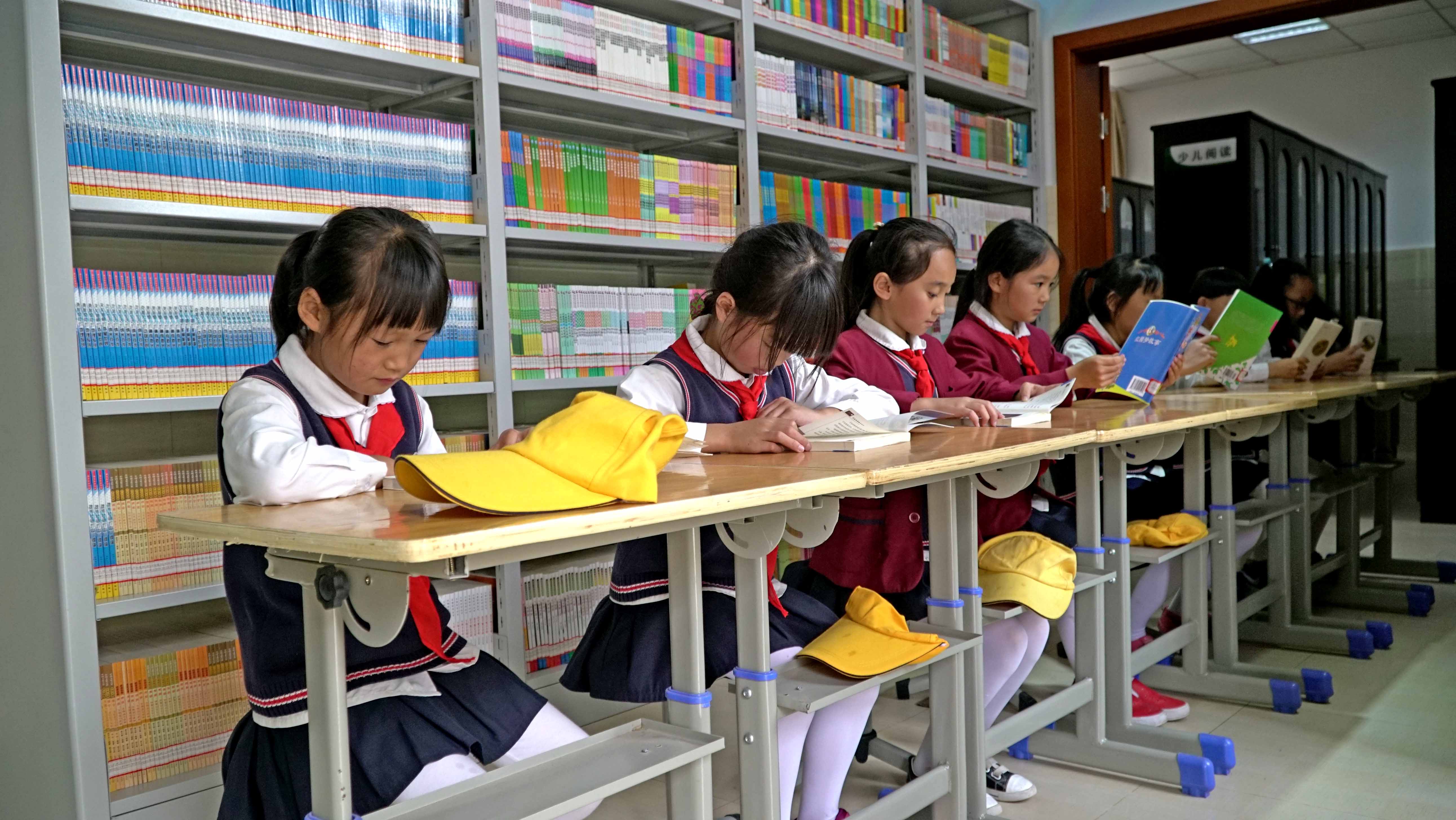 图书馆认真阅读的孩子们