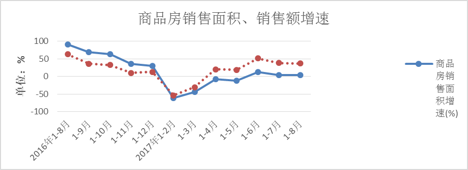 商品房销售额180.75亿元,同比增长36.7%,增速较1-7月下降1.3个百分点。