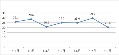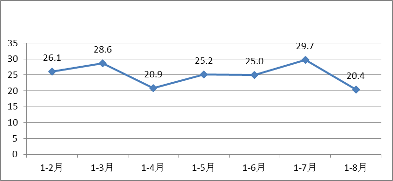 表1:官渡区1-8月固定资产投资(不含农户)增速(%)
