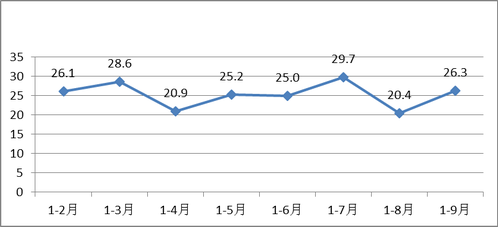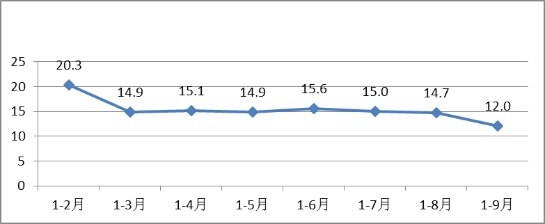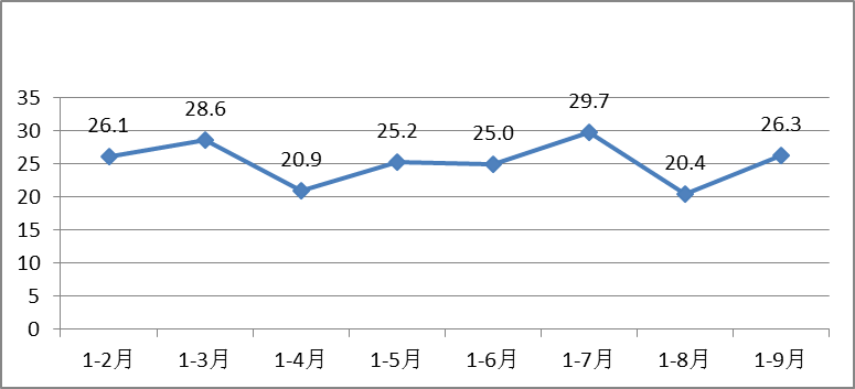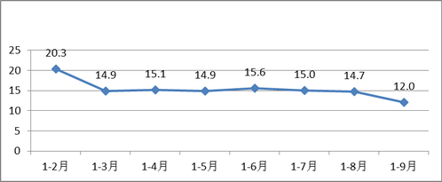 图1:官渡区1-9月固定资产投资(不含农户)增速(%)