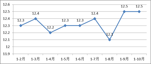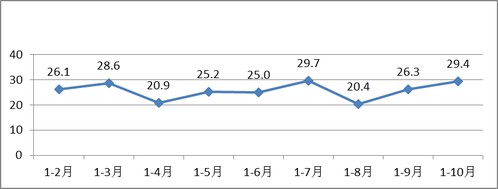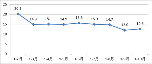 图1:官渡区1-10月固定资产投资(不含农户)增速(%)