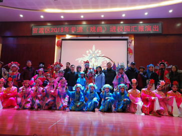为贯彻落实中宣部、教育部、财政部、文化部4部门联合印发的《中共中央宣传部等印发<关于戏曲进校园的实施意见>的通知》精神,全面落实党的教育方针,以立德树人为根本任务,坚守中华文化立场、传承中华文化基因,加强戏曲通识普及教育,增进学生对戏曲艺术的了解和体验,引领学生树立正确的审美观念、陶冶高尚的道德情操、培育深厚的民族情感,促进学生全面发展,营造戏曲传承发展的良好环境。2018年1月11日下午,由官渡区文体旅游局和小板桥街道办事处主办的“2018年官渡区戏曲进校园汇报演出”在官渡区小板桥镇中学举行。省市区相关领导莅临汇报演出,汇报演出由官渡区牛街庄社区滇戏传承基地和官渡区云溪小学承办。