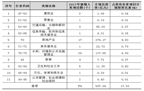 (一)2017年入库项目个数同比下降11.9%,新增计划总投资同比增长23.6%。