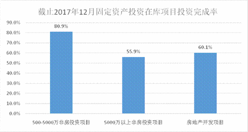 从以上在库项目投资数据可以看出固定资产投资及房地产开发项目累计完成投资均已过半,项目储备和新入库项目支撑严重不足,要保持投资持续、快速增长后续乏力,2018年要确保固定资产投资增长的任务较为艰难。