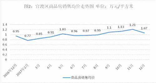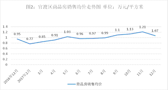 三、2017年官渡区商品房价格呈上涨趋势,带动商品房销售面积、销售额实现双增长