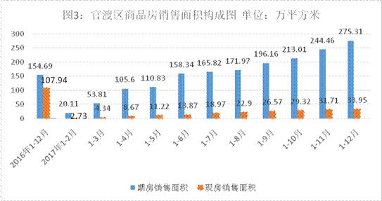 与去年相比,2017年商品房销售期房与现房构成比例发生了很大变化(详见图3)导致销售面积、待售面积均实现增长。