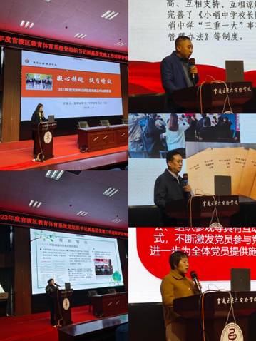 会议指出,坚持和加强党对教育体育工作的全面领导,是教育体育事业高质量发展的保证,抓好基层党建工作,责任重大,任务艰巨。近年来,全区教育体育系统各校(园)、单位充分发挥党建引领作用,凝心聚力促进教育体育事业高质量发展。全区公办中小学校认真落实党组织领导的校长负责制,推进党建工作与中心工作共融共促,不断提高基层党的建设水平。2023年,官渡区职业高级中学党总支部被命名为“云岭先锋 育人红烛”党建工作示范学校;曙光小学党支部、东站实验学党总支部、培智学校党支部、西南官渡实验学校党支部被命名为“春城先锋示范党支部”;曙光小学党支部、东站实验学校党总支部、培智学校党支部、昆明师范高等专科学校附属小学彩云城学校党支部、西冲小学党支部被命名为“官渡先锋示范党支部”。