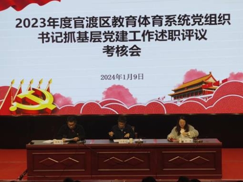 1月9日,官渡区委教育工委召开2023年度党组织书记抓基层党建工作述职评议考核会议,区教育体育局领导班子、区教育体育局机关各科室负责人、全区教育体育系统各基层校(园)、单位党组织负责人及基层党代表、人大代表、政协委员、基层党员干部及群众代表等120余人参加会议,区委教育工委常务副书记、区教育体育局党组书记、局长王竞元同志出席会议并讲话。