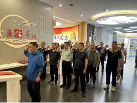 参观结束后,全体党员干部重温入党誓词,面向党旗,高举右拳,庄严宣誓,重忆入党初心,再次接受党性洗礼。誓必牢记服务宗旨,认认真真干事,干干净净做人,永葆廉洁本色,对党忠诚、为共产主义事业奋斗终身的决心。