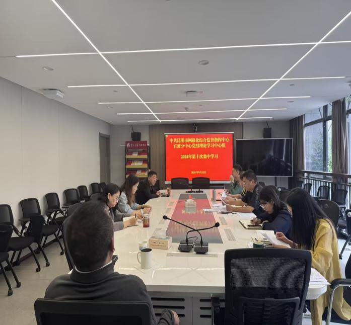 2024年9月12日,昆明市网格化综合监督指挥中心官渡分中心理论学习中心组开展2024年第十次集体学习,深入学习习近平总书记关于全面依法治国的重要论述精神,提升领导干部的法治意识和依法治理能力。会议由党组书记李云主持,党组成员参会,中心班子其他成员及各科室负责人列席会议。