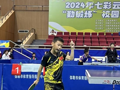 来自云南师范大学附属官渡学校唯一的1 名参赛队员——张雄,斩获了中学组男子单打冠军。这枚金牌代表着云南省中学生乒乓球的最高水平,也是本届比赛所有组别中单打含金量最高的一块金牌。中学组男子单打比赛汇聚了来自全省各地州的优秀选手,张雄通过层层选拔、淘汰,最终站在了决赛的舞台上,一举夺魁。张雄也接受了弥勒市融媒体中心的采访。