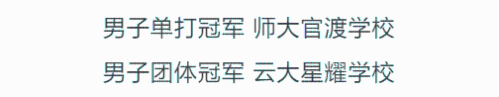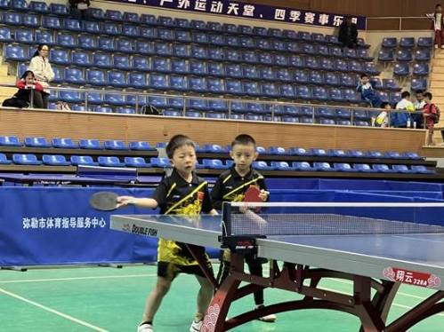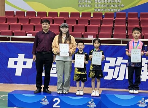 师专附小官渡学校一年级的小队员付政昕、赵宸峯、李晟琳以小打大,分别对战二、三年级的选手,他们比赛中超长发挥,打出了气势,最终获得了男子乙组团体第六名,詹璟怡、李晟琳获混双亚军,并接受了弥勒市融媒体中心的采访。
