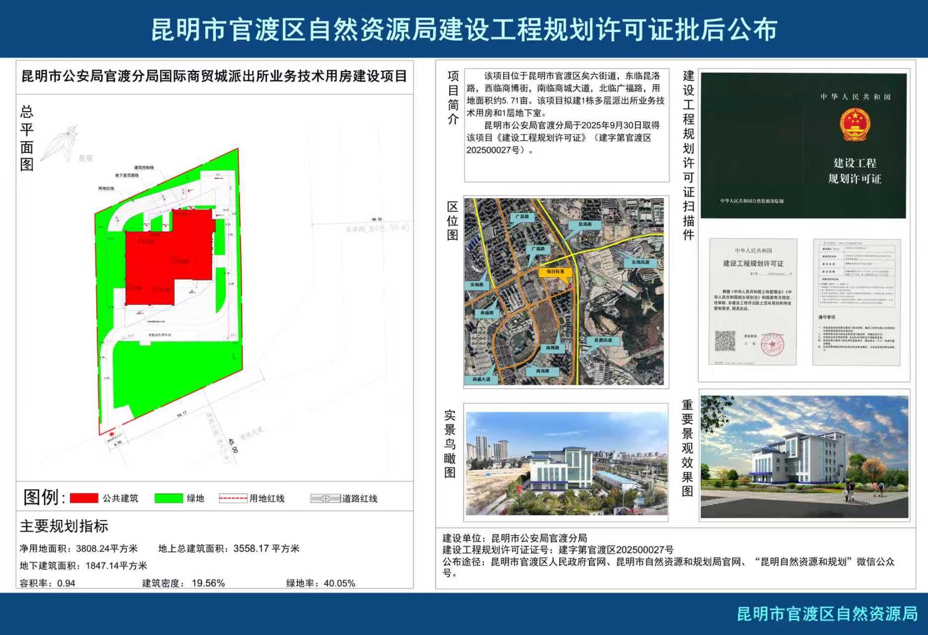 昆明市公安局官渡分局国际商贸城派出所业务技术用房建设项目批后公布