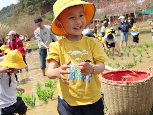 图5 “与春天的约会”亲子研学活动,孩子们在捉泥鳅