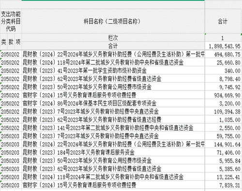 2024年度用于保障云南大学附属中学星耀喻昭学校为完成特定的行政工作任务或事业发展目标,用于专项业务工作的经费支出1898543.95元。其中:基本建设类项目支出0元。