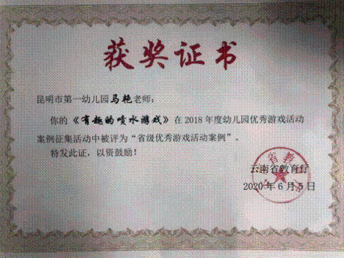 作为区级学科带头人,马艳老师始终以“让每个孩子都闪光”为目标,在数学、科学、语言等多个教学领域成果丰硕。她设计的大班数学活动《拼图游戏》被收录于园所教育研讨文集;《有趣的喷水游戏》案例不仅在2016年中国学前教育研究会学术年会上作分享,还荣获昆明市教育科学研究院成果一等奖、云南省优秀游戏活动案例等多项荣誉。