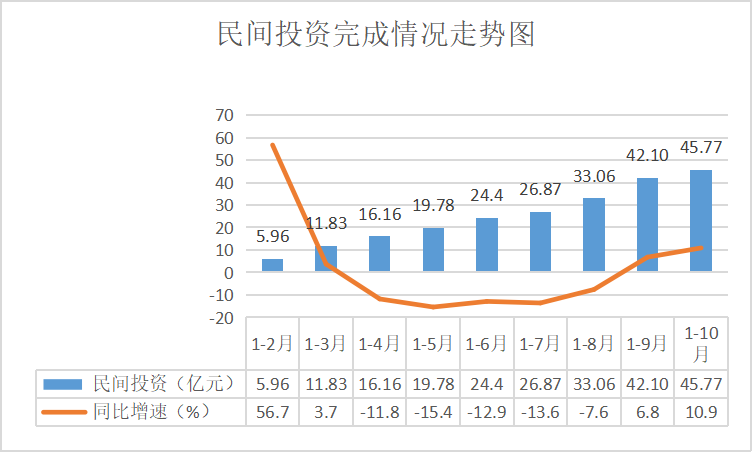 1-10月民间投资保持正增长态势,同比增长10.9%。本年47个新入库项目中,民间投资项目15个,占全部入库项目的31.9%。民间投资在基础设施及文旅等行业的持续增长,让我区的整体产业结构持续向高质量发展要求贴近。