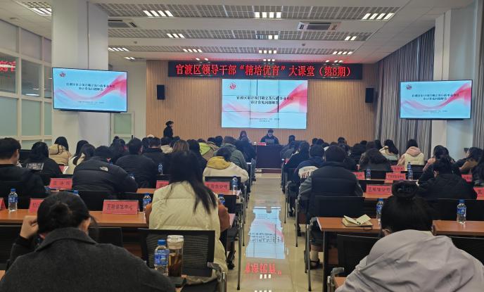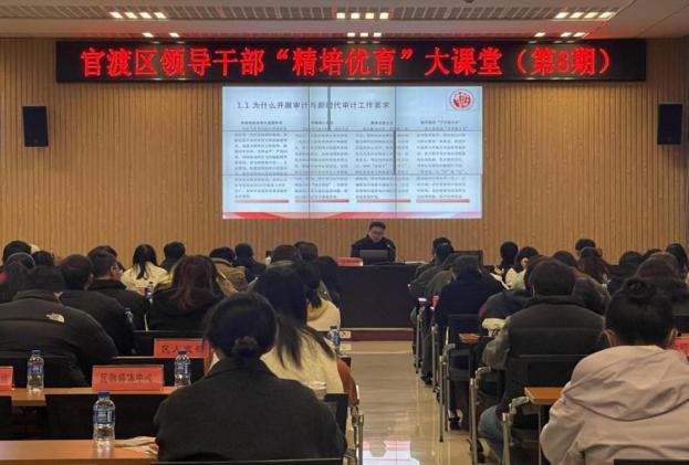 为加快提升领导干部对审计工作的理解,畅通审计监督渠道,促进与被审计单位高效联动,大力提升审计监督服务水平,11月20日下午,官渡区领导干部“精培优育”大课堂第八期在区国投大厦开讲,区审计局党组书记、局长范茂德同志围绕“审计项目的科学确立与行政事业单位审计常见问题”作专题培训授课。全区副科级领导、财务人员、区属国有企业分管领导及2024年新录用年轻公务员参加此次培训。