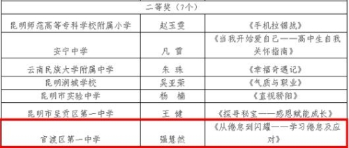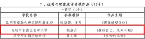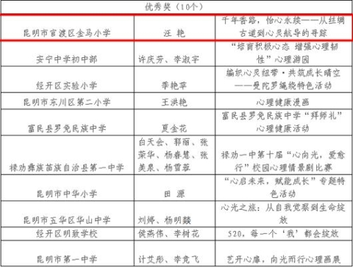 昆明市第十届 “5·20 中小学生心理健康日”系列活动典型案例评选结果