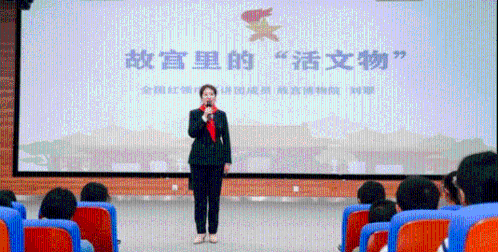 全国红领巾巡讲团成员、故宫博物院社会教育部的刘翠同志以《故宫里的“活文物”》为题,通过故宫里的古树名木,向队员们展现了博物馆承载的中华优秀传统文化,生动讲述了文化自信自强的深刻内涵,引导队员们感悟历史底蕴,增强民族自豪感。