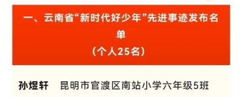 “我们的征途是星辰大海”,科幻小说里的这句话,在昆明市官渡区南站小学六年级学生孙煜轩心里种下了一颗向往科学的种子。近日,他入选了2025年云南省“新时代好少年”先进事迹发布名单,成为全省25名获此荣誉的优秀少年之一。