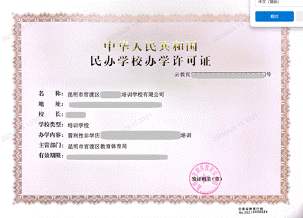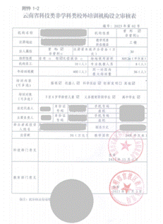 《办学许可证》、《设立审核表》示例: