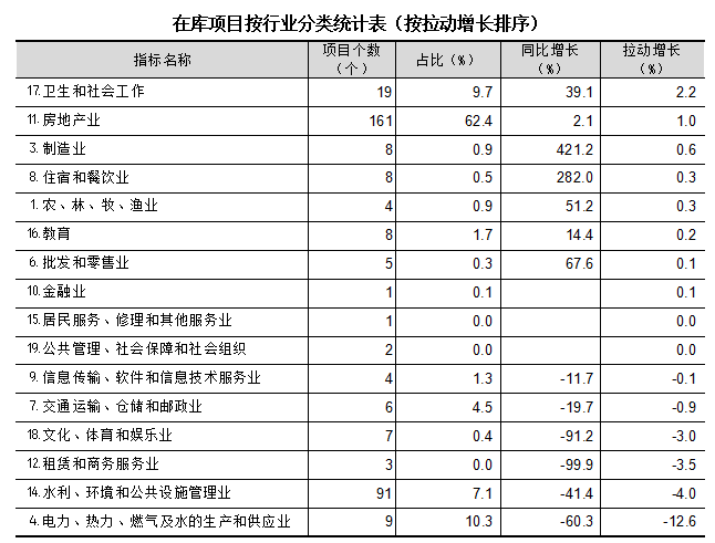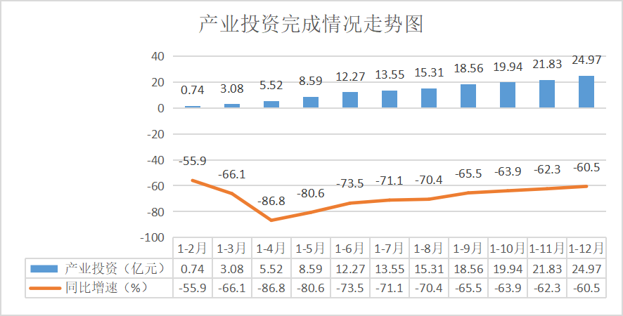 全部在库项目中50个产业项目,占比14.8%,较上年同期提高2.5个百分点。完成投资24.97亿元,同比下降60.5%。自4月最低点后降幅已累计收个26.3百分点。