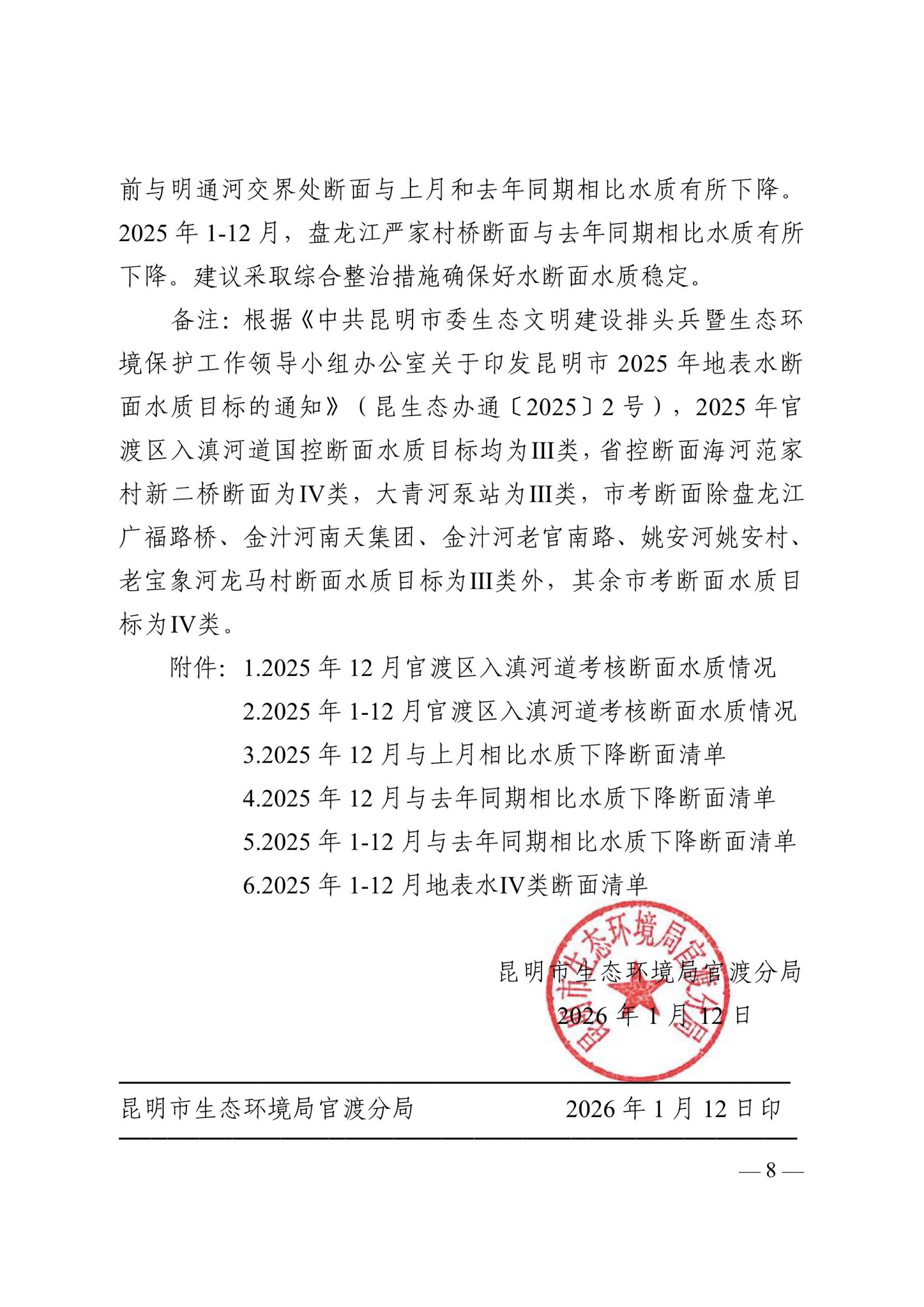 昆生环官报〔2026〕3号2025年1-12月官渡区入滇河道考核断面水质情况及预警专报_8