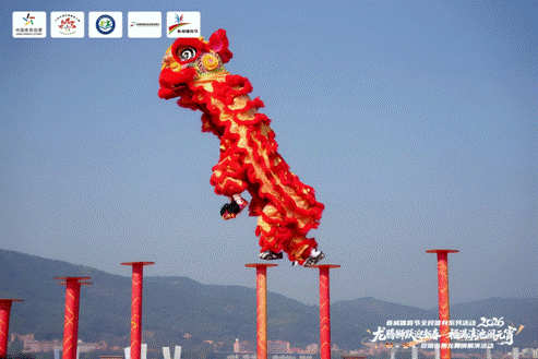跃动在展演赛场上的龙狮,正是非遗匠心与体育精神的完美交融。金龙腾跃,身姿矫健,在翻腾盘旋中如行云流水,尽显官渡儿女昂扬向上的龙马精神;瑞狮欢腾,憨态可掬,于登高采青时辗转腾挪,满载着福满滇池、瑞盈春城的美好祈愿。每一个刚劲有力的腾跃动作,都是对百年技艺的虔诚坚守;每一声震彻云霄的铿锵锣鼓,都是对民族文化的深情礼赞。